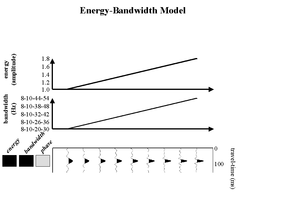 Energy-Bandwidth Model: Energy and bandwidth vary as in models 1) and 2); phase remains constant at 0.