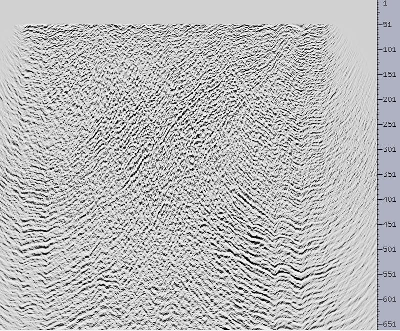 Taking the difference of the input offset record and the filtered off set record and display at a boosted amplitude scale we get