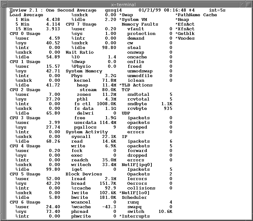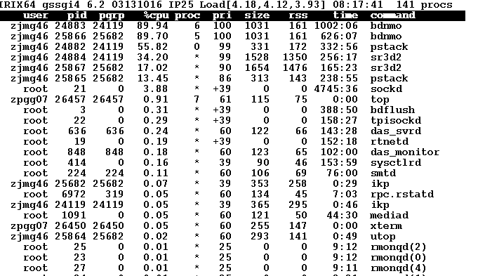 is another useful tool for use while parallelizing flows. It allows you to see the effective load of each element of your net. You can also quickly see who else is on the system and what they may be up to. System loads can be quite high and still allow effective processing. We have seen system loads over 140 on our 8 CPU SGI Power Challenge during some parallelized decompression flows.