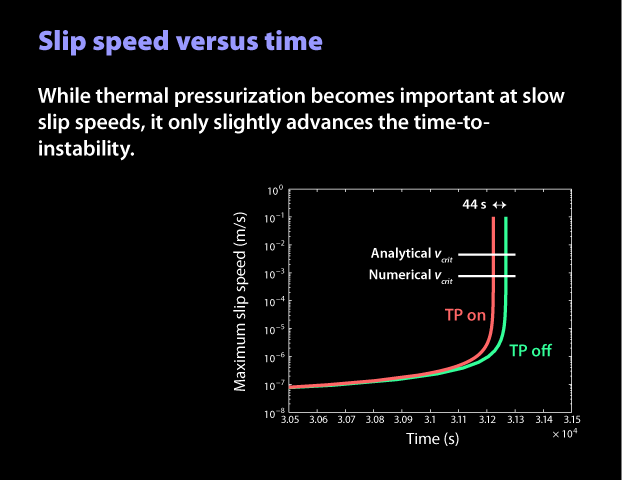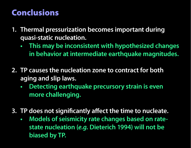 And three, thermal pressurization does not significantly affect the time-to-instability. Thus, models of seismicity rate changes based on that time will not really be affected by thermal pressurization.