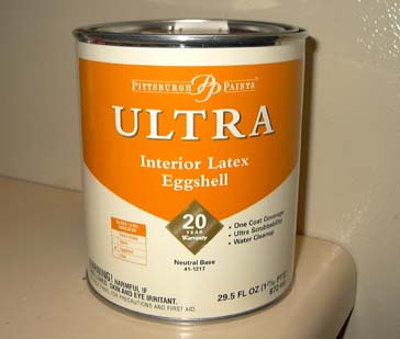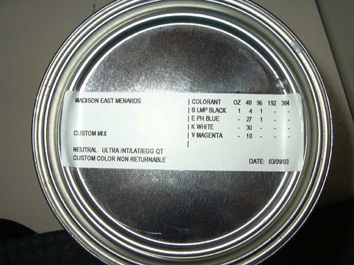 - Latex paint, eggshell sheen, color-matched to medium dark adriatic blue by the helpful people at Menards,